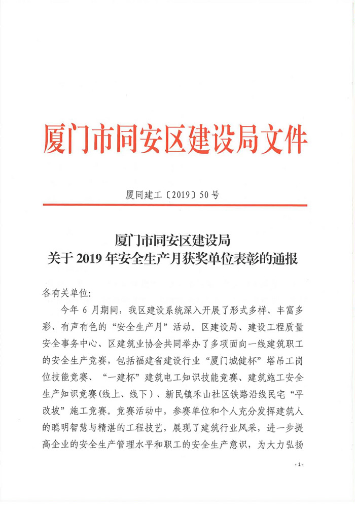廈同建工【2019】50號(hào)